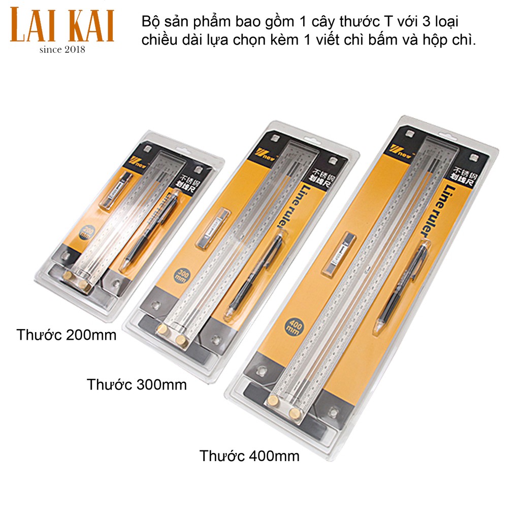 Bộ sản phẩm gồm 1 thước T lỗ với chiều dài lựa chọn, 1 bút chì bấm và hộp ruột chì.Gồm các chiều dài lựa chọn: 120mm; 200mm; 300mm; 400mm