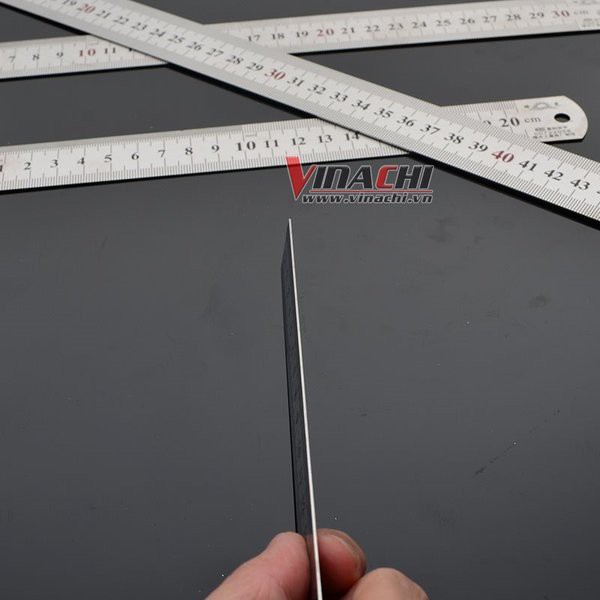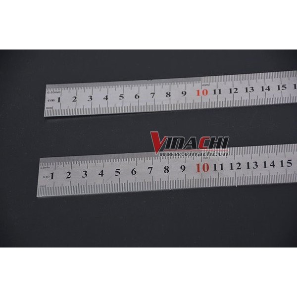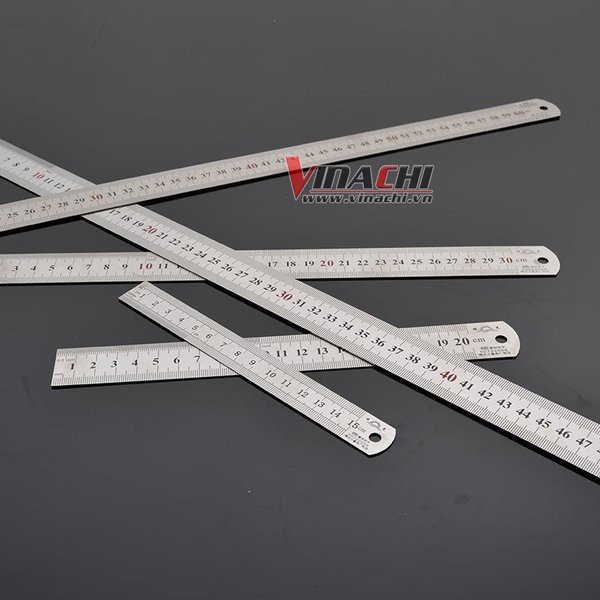 - Thước thẳng được làm bằng chất liệu Inox. Thước được thiết kế theo hệ mét, khoảng đo nhỏ nhất là mm, đơn vị đo
