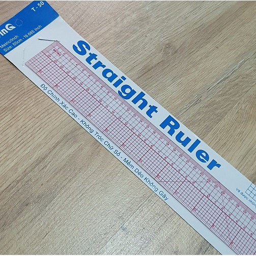 Đặc điểm: là sản phẩm thước kẻ bằng nhựa dẻo bề rộng khoảng 5cm, dài 50cm.Thước có ghi đầy đủ thông số đo độ dài chi tiết.