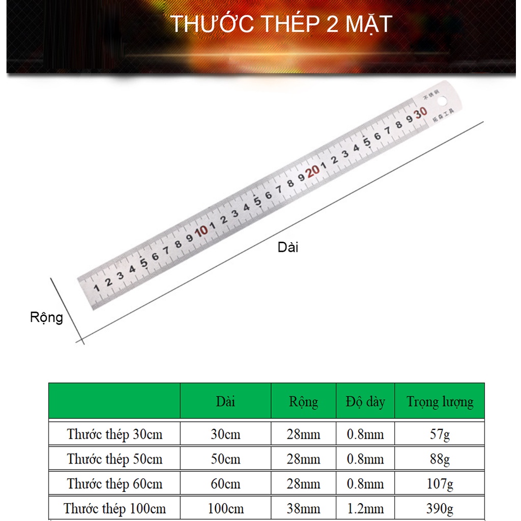 Nhà cửa & Đời sống > Dụng cụ & Thiết bị tiện ích > Dụng cụ > Dụng cụ đo lường || Thước thép 2 mặt dài 30cm, thước lá thép hai mặt với độ dài 30cm, có 2 màu chữ đỏ và đen - Chính hãng TUOSENCòn hàng