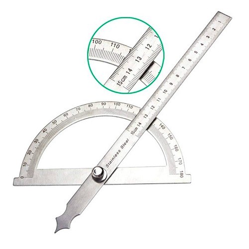 Thước thép đo góc kết hợp thước thẳng xoay 180 độ còn gọi là thước bán nguyệt dùng để đo góc trong các ngành công nghiệp như chế tạo, sửa chữa máy móc, đo độ nghiêng của mái, thành đà, đo độ dốc của mặt đường, mặt phẳng nghiêng, đo độ thăng bằng khi lắp đặt vật dụng nội thất, v.v...