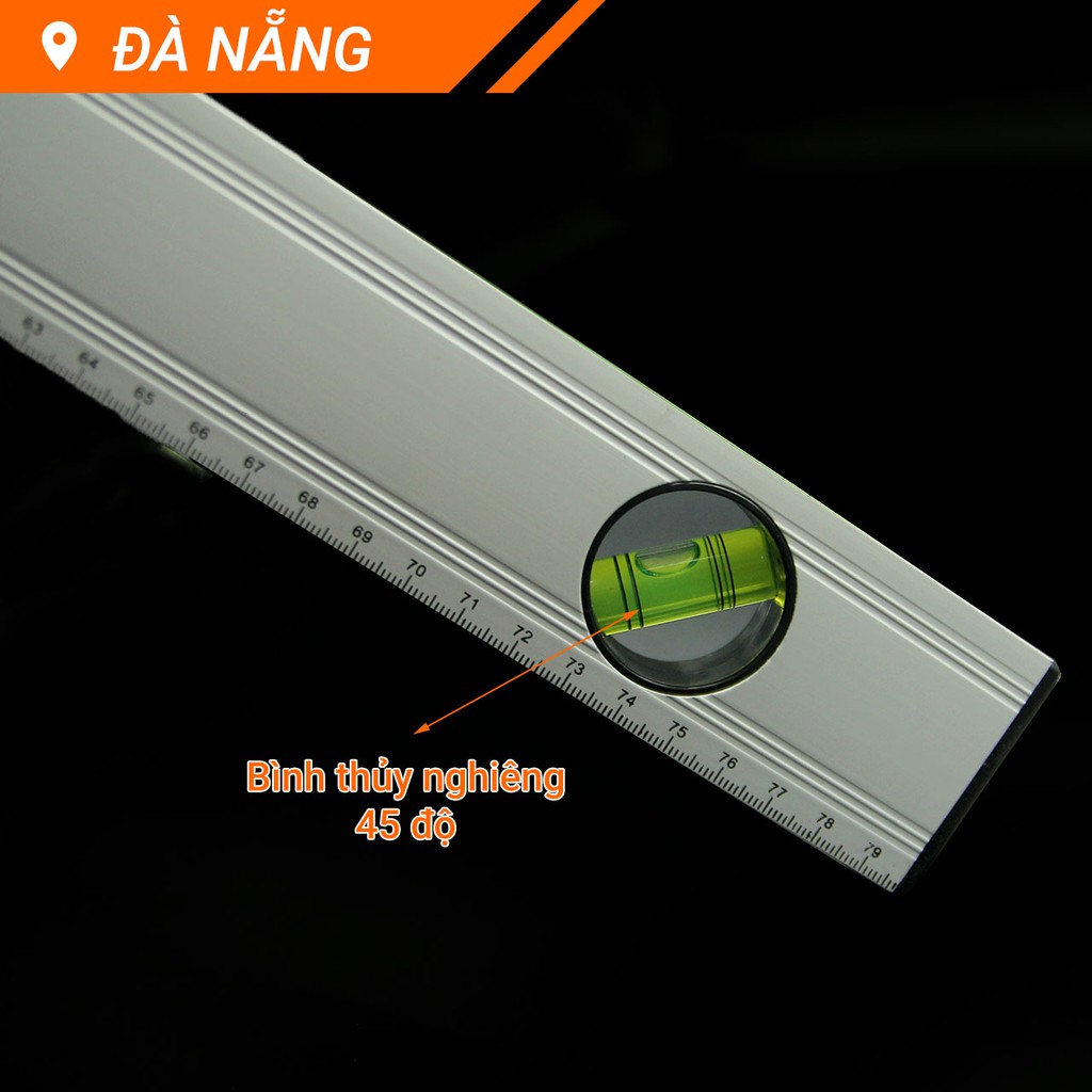 Chiều dài 80cm,với 3 ống thủy được cố định theo chiều ngang, dọc và nghiêng 45độ so với phương ngang