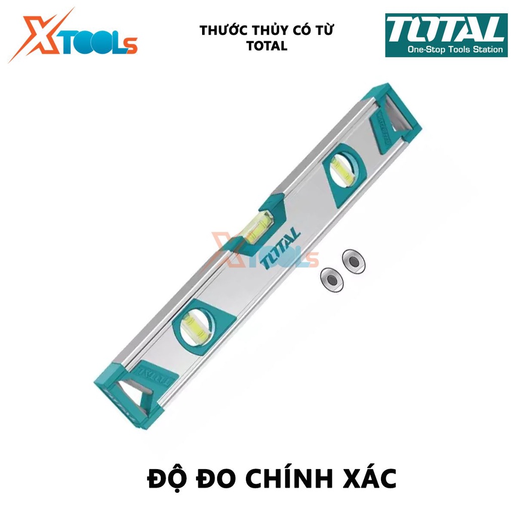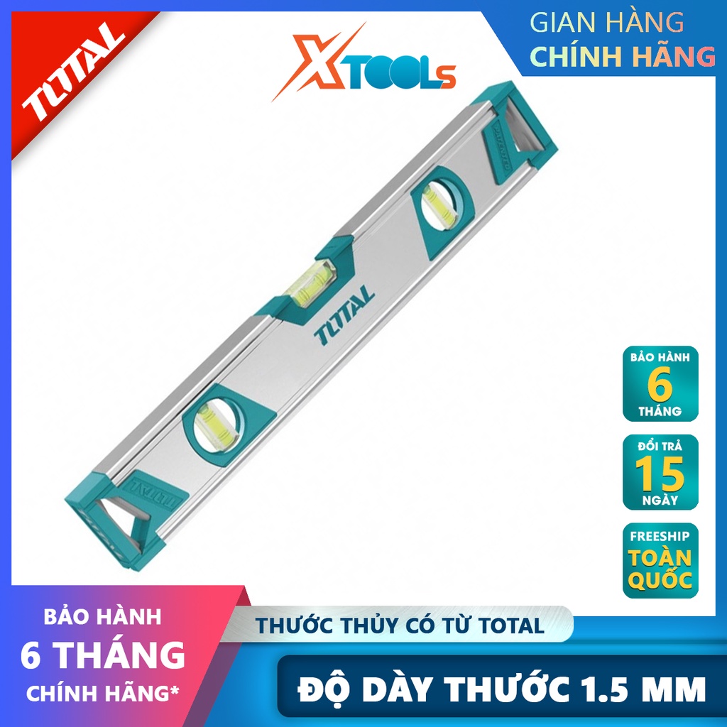 Thước thủy có tử TOTAL là sản phẩm chính hãng và chất lượng của Total, một thương hiệu nổi tiếng thế giới đến từ nước Đức chuyên sản xuất các dụng cụ dân dụng, dụng cụ điện cầm tay. Total có nhà máy đặt tại Trung Quốc nhưng sản phẩm được sản xuất trên dây chuyền công nghệ hiện đại của Mỹ, châu u và Úc nên giá thành sản phẩm phù hợp với đa số người dùng.