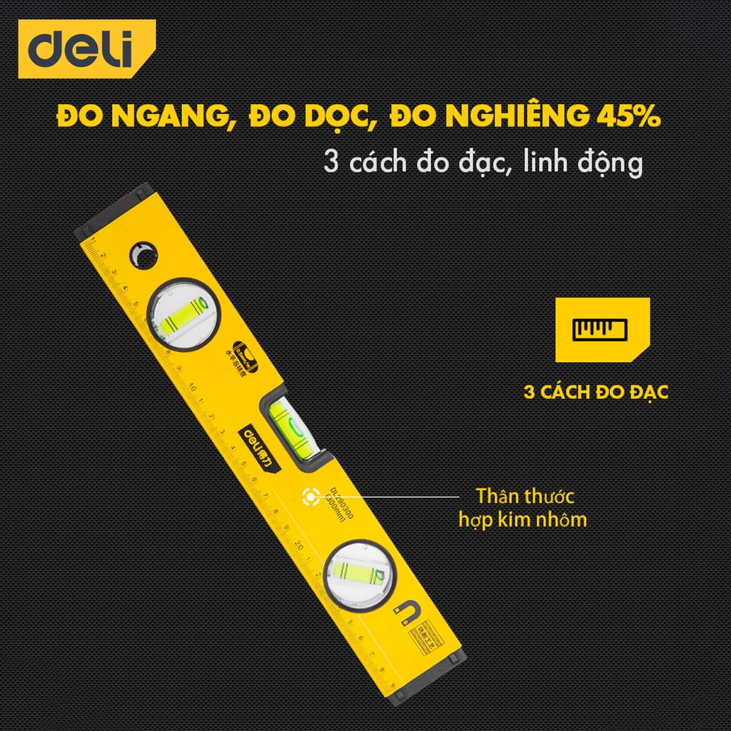 Nhà cửa & Đời sống > Dụng cụ & Thiết bị tiện ích > Dụng cụ > Khác || Thước Thủy Deli Cao Cấp Chính Hãng - Chất Liệu Hợp Kim Nhôm Siêu Bền, Chính Xác Tuyệt Đối, Tiện Dụng DL290230 EDL290400Còn hàng