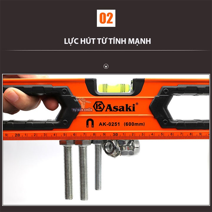-Thước thủy li vô Asaki là dụng cụ đắc lực trong ngành xây dựng, cơ khí giúp đo đạc nhanh chóng, chính xác. Thước được làm từ chất liệu thép cao cấp, không biến dạng, hư hỏng trong mọi điều kiện thời tiết khắc nghiệt.-Thước thủy Asaki là dụng cụ đo độ nghiêng, góc nghiêng, độ dốc của những sản phẩm, công trình hay những đồ thủ công mỹ nghệ chuyên dụng, với kết quả đo chính xác và thước có khả năng đo được tất cả các góc và độ nghiêng khác nhau.