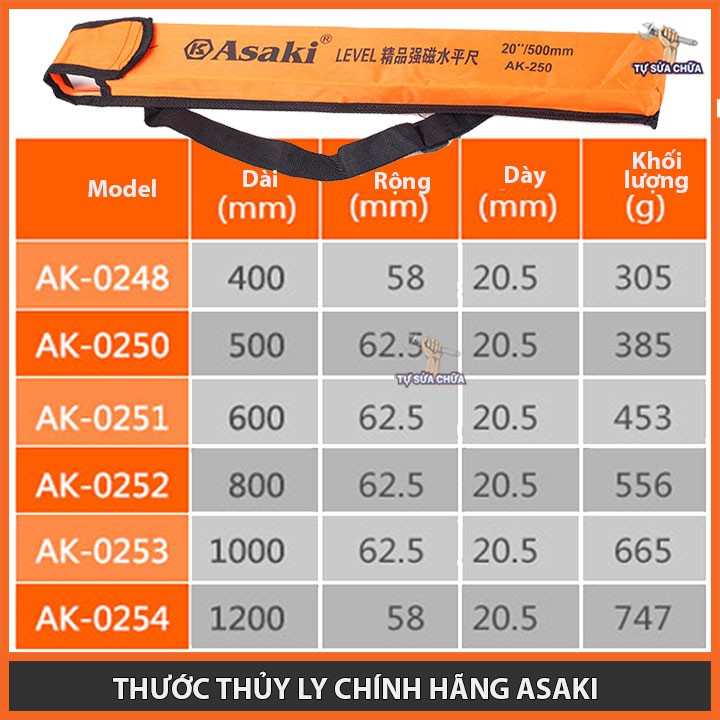 Nhà cửa & Đời sống > Dụng cụ & Thiết bị tiện ích > Dụng cụ > Dụng cụ đo lường || Thước thủy li vô có nam châm đủ kích cỡ 40cm, 50cm, 60cm, 80cm, 1m, 1m2 chính hãng Asaki độ chính xác cao, HÀNG XỊNCòn hàng