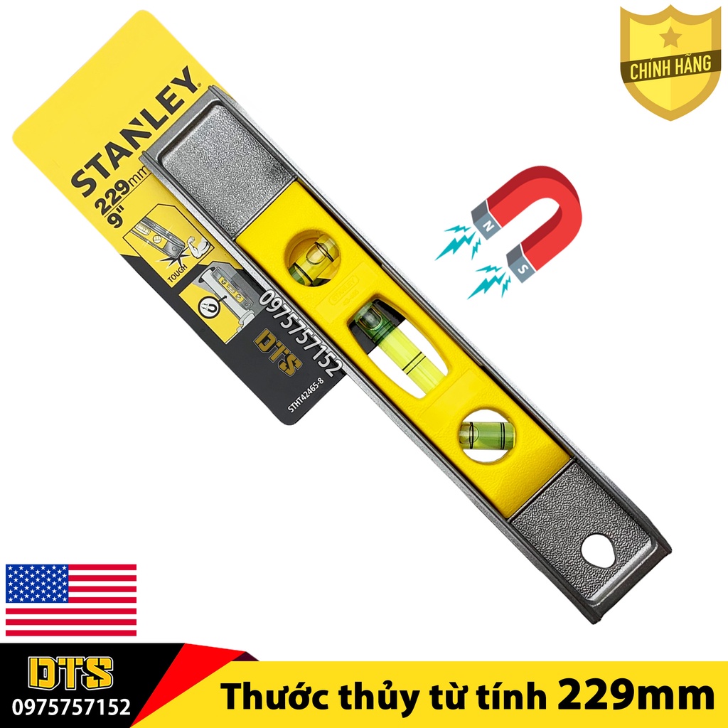Nhà cửa & Đời sống > Dụng cụ & Thiết bị tiện ích > Dụng cụ > Dụng cụ đo lường || Thước thủy nivo cao cấp 9 inch Stanley Mỹ dài 229mm, khung thép đúc nguyên khối, ống nước nivo đo góc nghiêng cân bằngCòn hàng