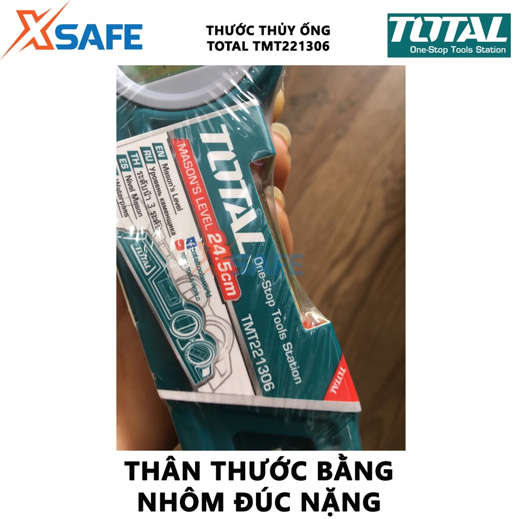 Giới thiệu Thước thủy ống TOTAL TMT221306 Thước nivo dài 24,5cm, thân thước nhôm đúc nặng, chịu lực chịu nhiệt bền bỉ