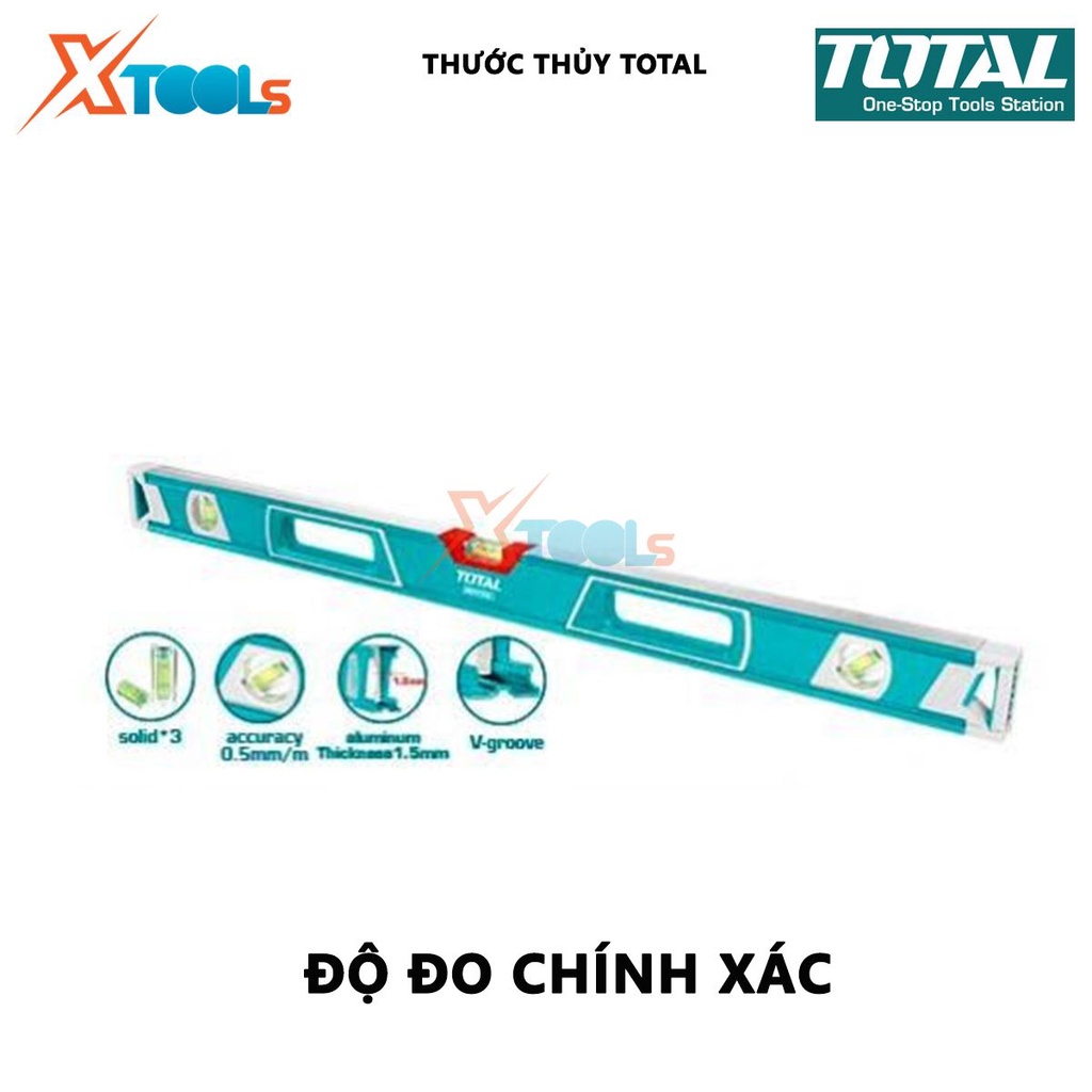 Thước thủy TOTAL là sản phẩm chính hãng và chất lượng của Total, một thương hiệu nổi tiếng thế giới đến từ nước Đức chuyên sản xuất các dụng cụ dân dụng, dụng cụ điện cầm tay. Total có nhà máy đặt tại Trung Quốc nhưng sản phẩm được sản xuất trên dây chuyền công nghệ hiện đại của Mỹ, châu u và Úc nên giá thành sản phẩm phù hợp với đa số người dùng.