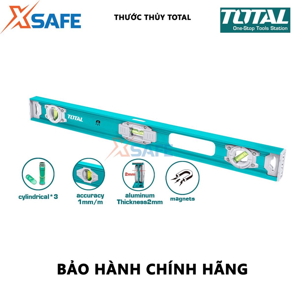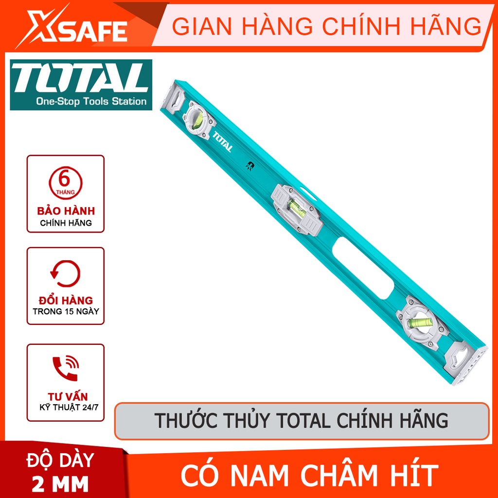 Thước thủy TOTAL là sản phẩm chính hãng và chất lượng của Total, một thương hiệu nổi tiếng thế giới đến từ nước Đức chuyên sản xuất các dụng cụ dân dụng, dụng cụ điện cầm tay. Total có nhà máy đặt tại Trung Quốc nhưng sản phẩm được sản xuất trên dây chuyền công nghệ hiện đại của Mỹ,Châu Âu và Úc nên giá thành sản phẩm phù hợp với đa số người dùng.