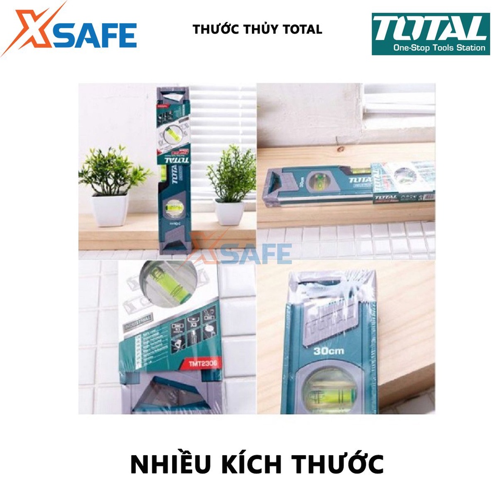 - Thước thủy Total được thiết kế lọ đọc dễ dàng quan sát, xác định độ phẳng của bề mặt cần đo hơn. Ngoài ra thước còn có thiết kế tiện lợi giúp thao tác dễ dàng. Lọ đọc được bao bọc giúp bảo vệ và kéo dài tuổi thọ cho thước.