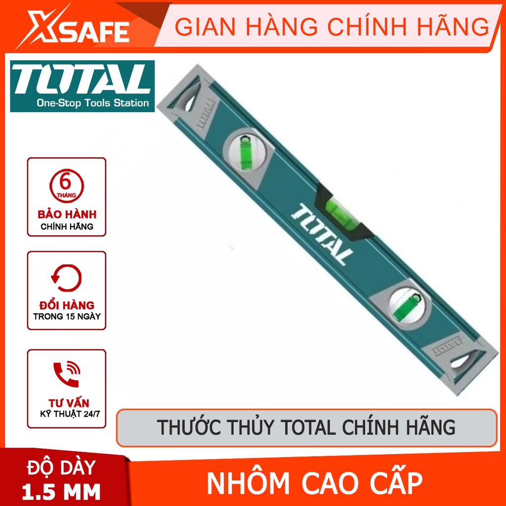 Thước thủy TOTAL là sản phẩm chính hãng và chất lượng của Total, một thương hiệu nổi tiếng thế giới đến từ nước Đức chuyên sản xuất các dụng cụ dân dụng, dụng cụ điện cầm tay. Total có nhà máy đặt tại Trung Quốc nhưng sản phẩm được sản xuất trên dây chuyền công nghệ hiện đại của Mỹ, Châu Âu và Úc nên giá thành sản phẩm phù hợp với đa số người dùng.