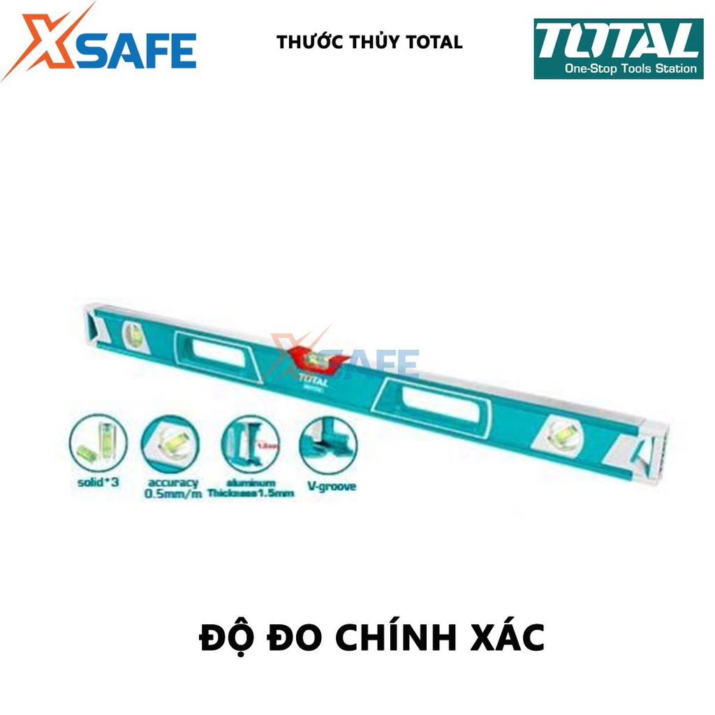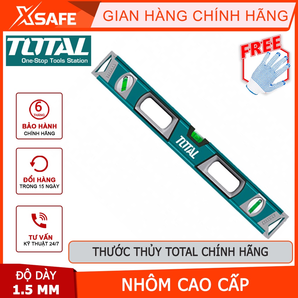 Thước thủy TOTAL là sản phẩm chính hãng và chất lượng của Total, một thương hiệu nổi tiếng thế giới đến từ nước Đức chuyên sản xuất các dụng cụ dân dụng, dụng cụ điện cầm tay. Total có nhà máy đặt tại Trung Quốc nhưng sản phẩm được sản xuất trên dây chuyền công nghệ hiện đại của Mỹ, Châu Âu và Úc nên giá thành sản phẩm phù hợp với đa số người dùng.
