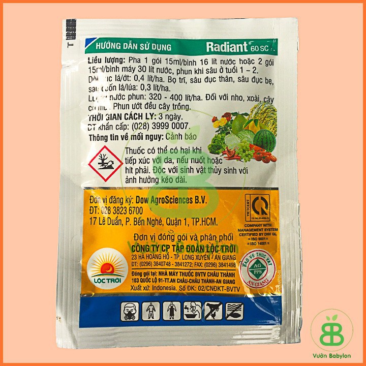 Thuốc trừ sâu sinh học radian chuyên trị trĩ, dâu, rệp...1 gói pha 16 lít nước.