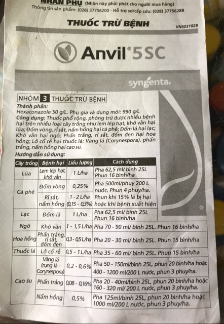 Hexaconazole 50g/L, phụ gia & dung môi 990g/lít