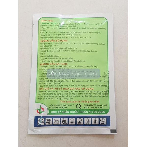 *Moi oc 6GR là ốc đặc trị ốc bươu vàng hại lúa.Thuốc có tác dụng làm cho ốc tít nhiều nhớt và chết sau khi ăn phải.