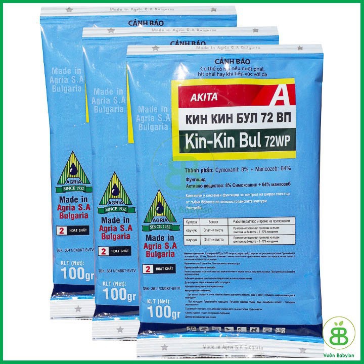 Kin Kin Bul 72WP là thuốc trừ bệnh hỗn hợp giữa 2 hợp chất Mancozeb và Cymoxanil có tác động tiếp xúc và nội hấp lưu dẫn mạnh.
