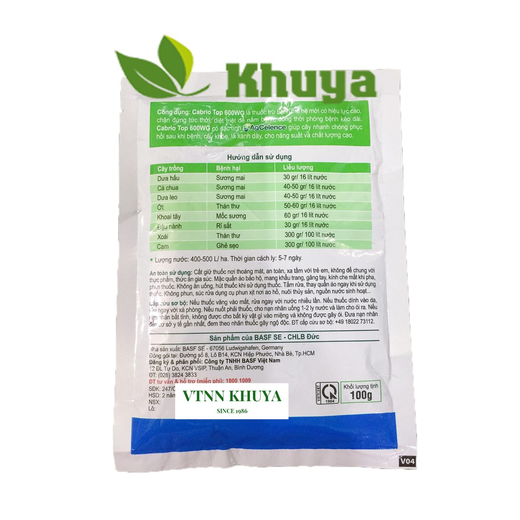Thuốc trừ bệnh Cabrio Top 600WG 100gr Đặc trị Sương mai và Thán thư