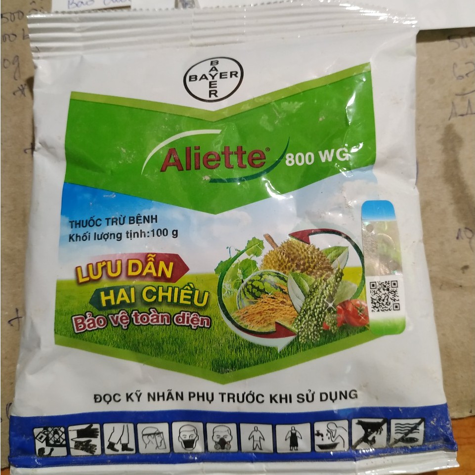 Thuốc Trừ Bệnh Cây Trồng Aliette 800WG (gói 100g)Aliette 800WG là loại thuốc đặc trị vi khuẩn có tính nội hấp, có tác dụng bảo vệ và diệt trừ; thẩm thấu nhanh, lưu dẫn 2 chiều, vận chuyển hướng ngọn và rễ.