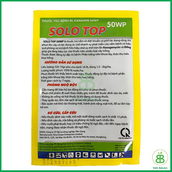 Vườn Babylon Xin Kính Chào Qúy Khách!Thuốc trừ bệnh phấn trắng hoa hồng SOLO TOP 50WP
