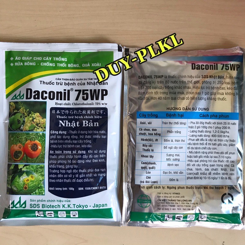 Nhà cửa & Đời sống > Làm vườn > Phân bón || THUỐC TRỪ BỆNH PHỔ RỘNG NHẬT BẢN : DACONIL 75WP. Gói 100gr.Còn hàng