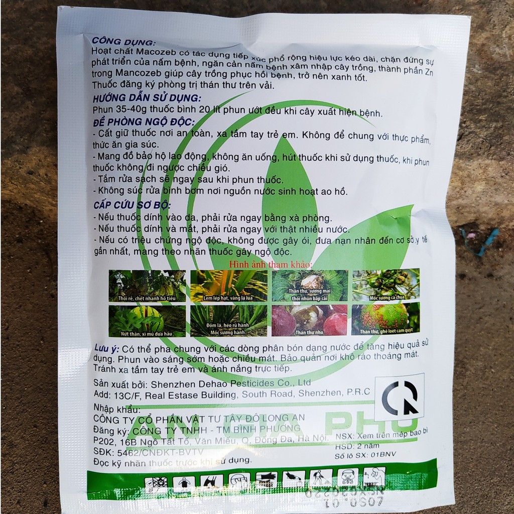 Nhà cửa & Đời sống > Làm vườn > Phân bón || Thuốc Trừ Bệnh Phổ Rộng MANCOZEB Xanh - Phòng và trị bệnh xâm nhập cây trồng (100g)Còn hàng