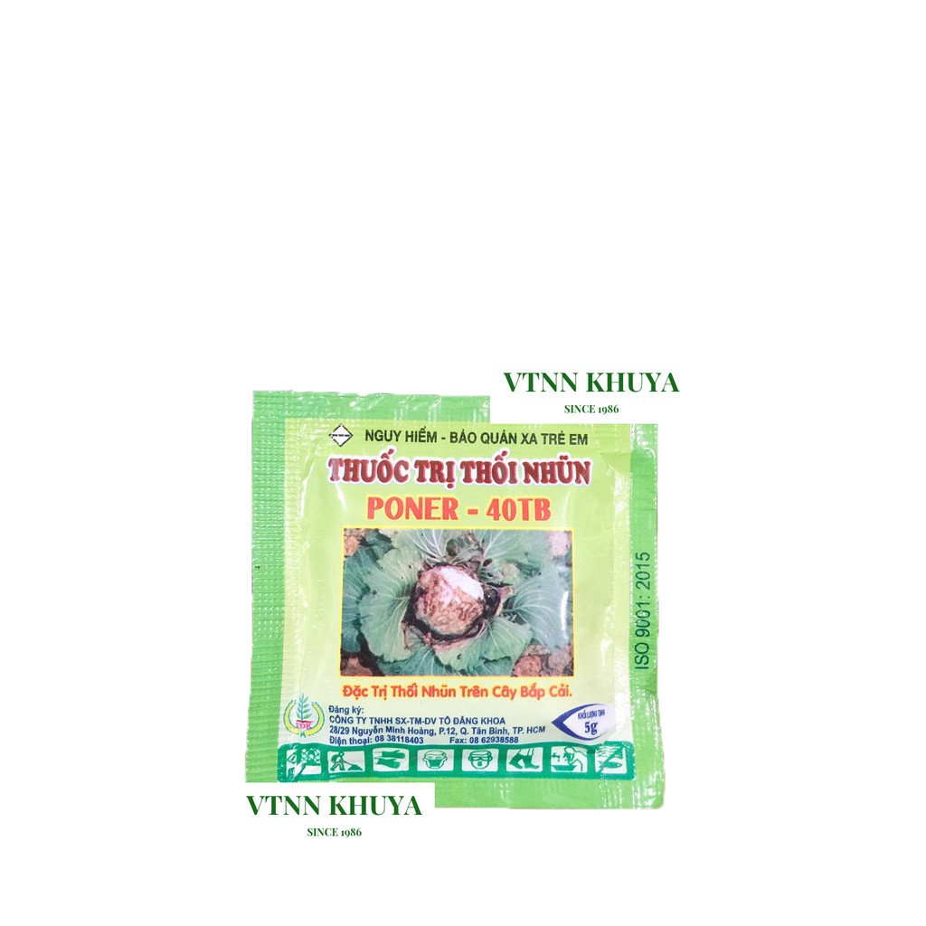 Thuốc trị thối nhũn Poner 40TB dạng viên sủi 5gram Đặc trị thối nhũn bắp cảiThành phần: Streptomycin sunfat 40%, phụ gia vừa đủ 100%.