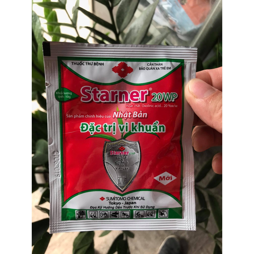🔺 Sản phẩm Starner 20WP chính hiệu của Nhật Bản được sản xuất từ hoạt chất Oxolinic acid, giúp tiêu diệt vi khuẩn gây bệnh hại cây trồng một cách hiệu quả và triệt để.🔺 Hoạt chất: Oxolinic acid: 20% w/w