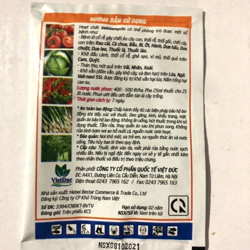 * Thành phần: Validamycin A 50g/l* Thể tích thực: Chai 25ml
