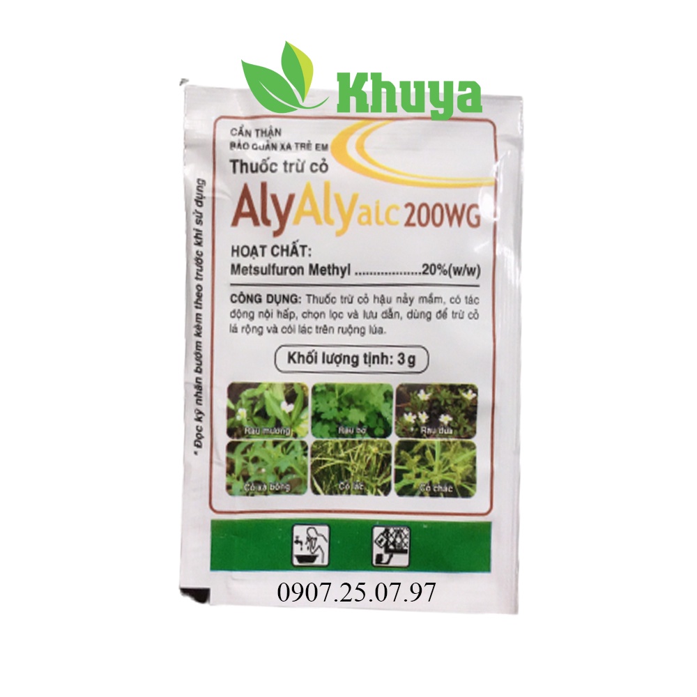 Thuốc trừ cỏ AlyAlyaic 200WG gói 3gr Thay thế cỏ 2,4DHoạt chất: Metsulfuron Methyl 20% (w/w)