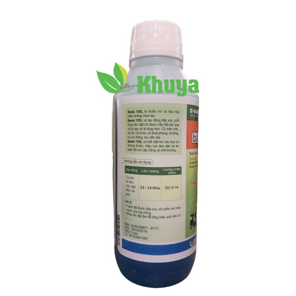 Thuốc trừ cỏ Basta 15SL chai 1 lít Thay thế cỏ ParaquatThành phần: Glufosinate ammonium...150g/L, Phụ gia và dung môi đủ 1 lít