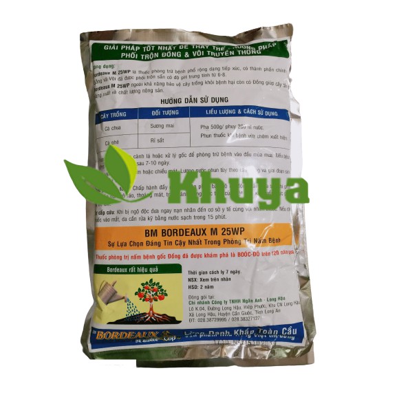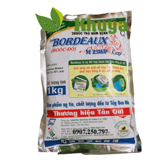 * Thành phần: Bordeaux Mixture:chứa Cu (Đồng) 25% w/w