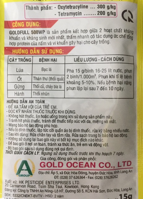 Gói 15gHoạt chất: oxytetracyline 300g/kg