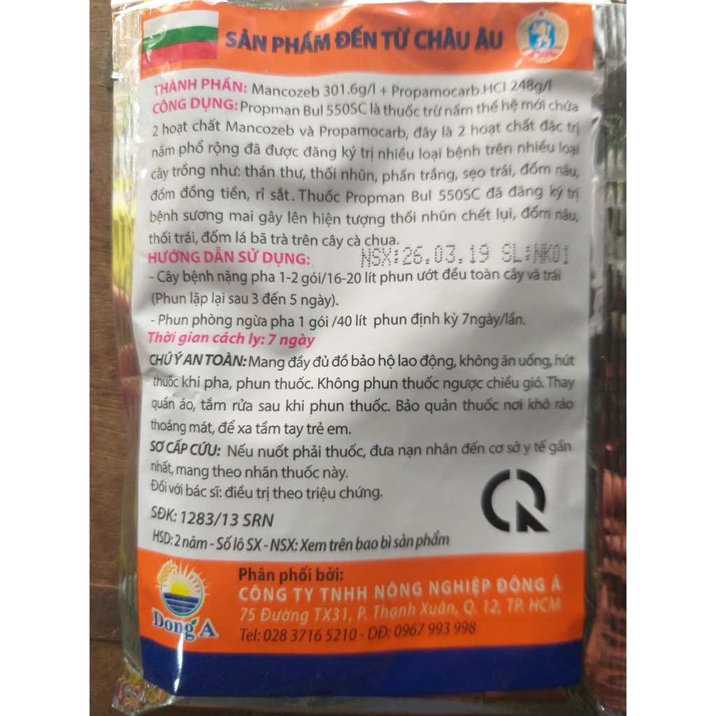 Thuốc Trừ Nấm Propman Bul 550sc - Thuốc Trừ Bệnh nhập khẩu BULGARIA (50ml)Thành Phần: + Mancozeb 301.6g/l