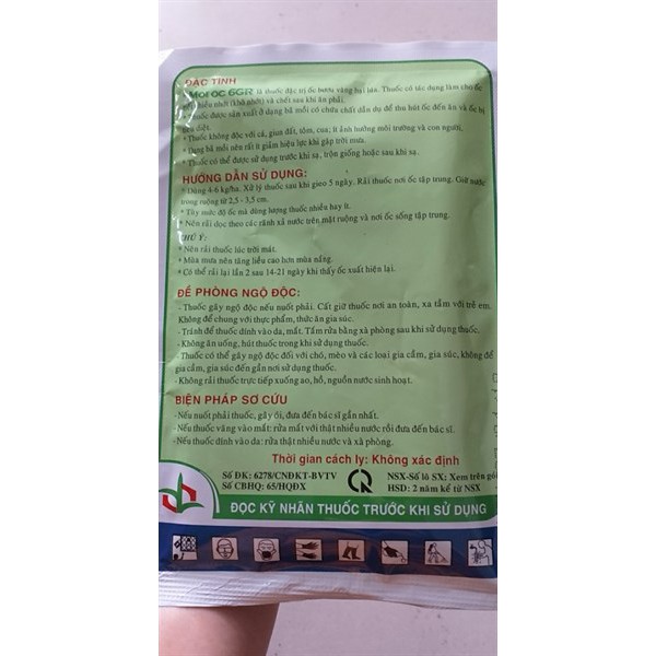 Hoạt chất: Metaldehyde 6%, còn lại là phụ gia.