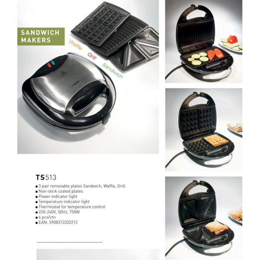 Giới thiệu [Thương hiệu Ba Lan] Kẹp nướng sandwich Tiross TS513 (TS513)