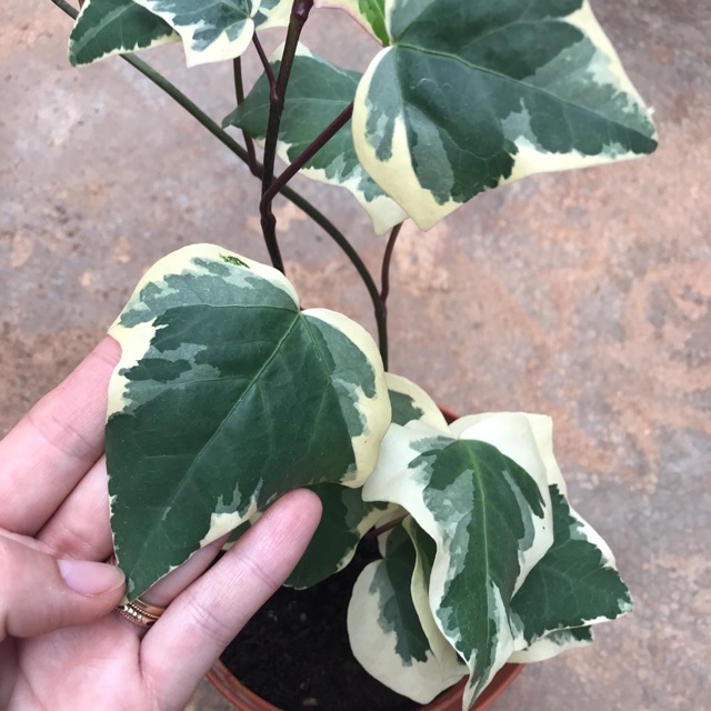 - Cây thường xuân cẩm thạch có lá lớn ( gấp 3-4 lần lá thường), vân lá pha lẫn giữa màu xanh trắng đẹp mắt. Giống mới số lượng chưa nhiều.- Phun dưỡng lá với Atonik tháng 1 lần, tưới nước khi bề mặt chất trồng khô. Cây thích nghi với nơi ánh sáng nhẹ.
