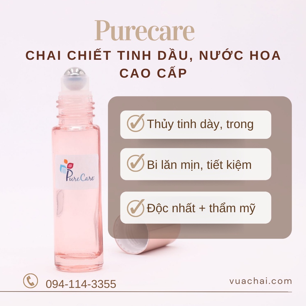 Chai Bi lăn 10ml cao cấp THỦY TINH DÀY màu hồng dễ thương🌳 Đặc điểm nổi bật: