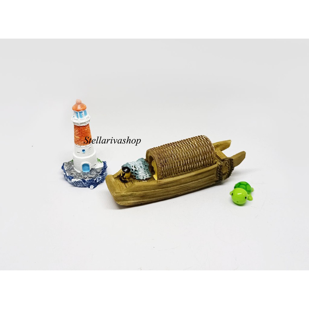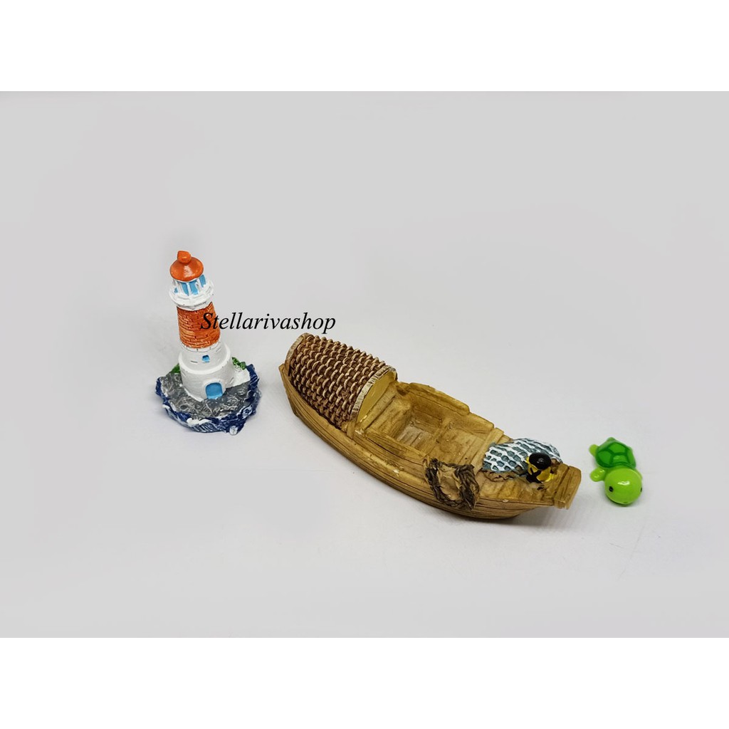 Thuyền Gỗ Đánh Cá Size lớn trang trí tiểu cảnh sen đá, terrarium, aquariumSize 9.5*2.5*3.8CM