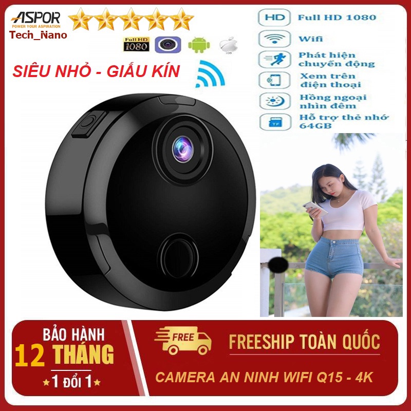 Tí Hon, Dùng PinCamera wifi Q15 Full HD Wifi,siêu nhỏ an ninh,chống trộm xem từ xa qua điện thoại có kết nối mạng