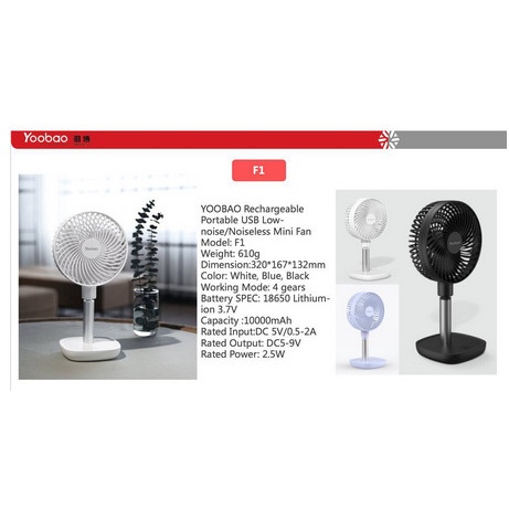 Điện Thoại & Phụ Kiện > Phụ kiện > Quạt USB & Quạt điện thoại || [Mã ELHA22 giảm 5% đơn 300K] TÍCH ĐIỆN 60 TIẾNG - Quạt sạc yoobao F1 10000mah. Hàng chính hãngCòn hàng