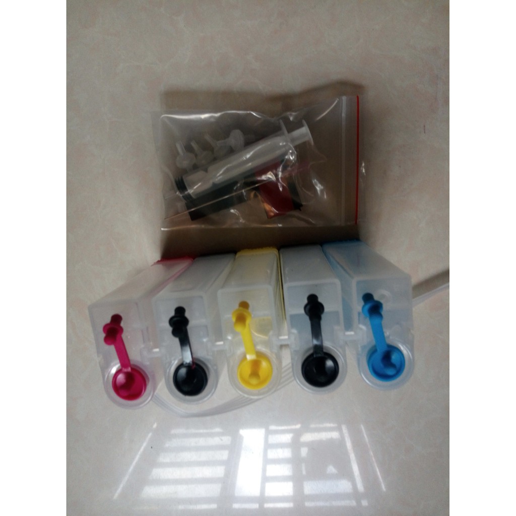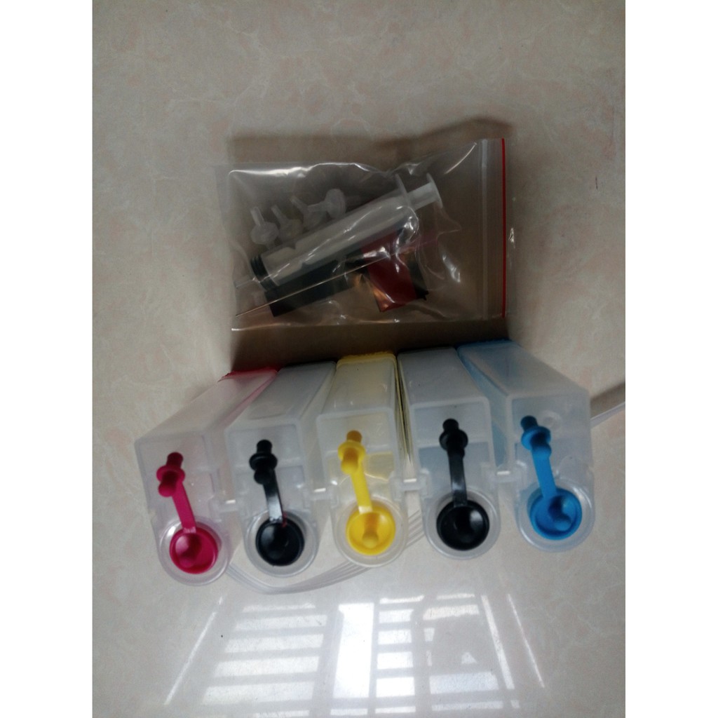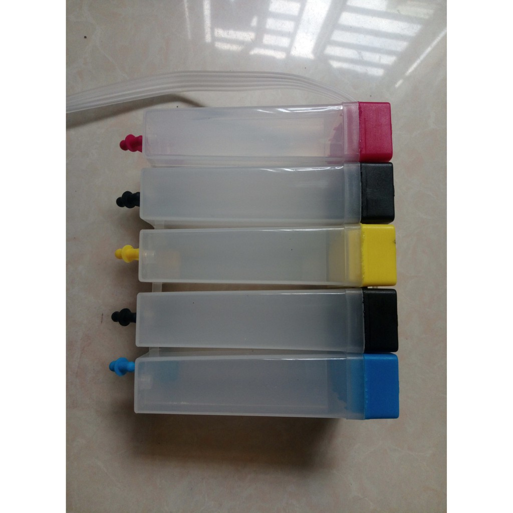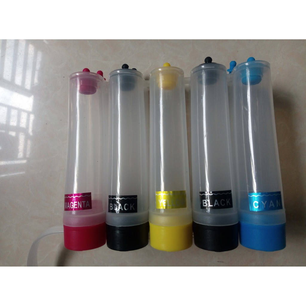 Bộ tiếp mực ngoài dùng cho máy Canon IX6770, TS 6370 và các dòng máy Canon có cụm đầu in 5 màu.Bộ tiêp mực gồm 5 bình chứa mực: 2 màu đen, 1 màu xanh, 1 màu đỏ, 1 màu vàng.