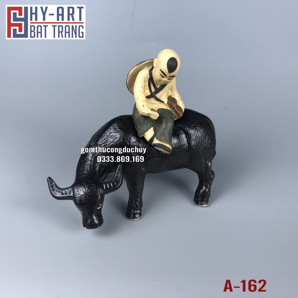 Tiểu cảnh hồ cá, bể cá cảnh, Tượng gốm cậu bé chăn trâu trang trí hòn non bộ chậu cây bonsai-Chất liệu: gốm đất nung (Hoàng Thổ) KHÔNG ĐỘC HẠI, KHÔNG GÂY Ô NHIỄM NƯỚC.