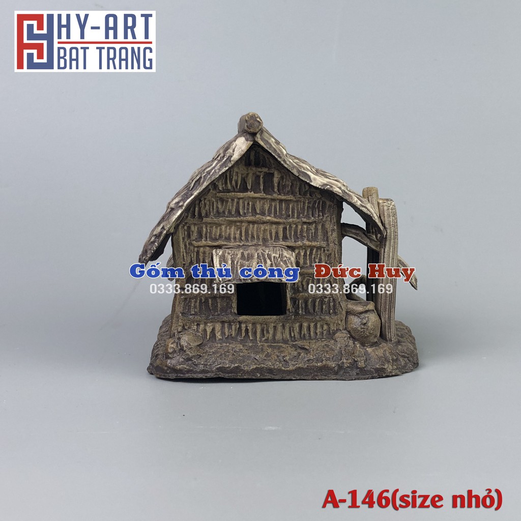 Tiểu cảnh hồ cá, bể cá cảnh, mô hình gốm nhà tranh vách đất trang trí hòn non bộ chậu cây bonsai-Chất liệu: gốm đất nung (Hoàng Thổ) KHÔNG ĐỘC HẠI, KHÔNG GÂY Ô NHIỄM NƯỚC.