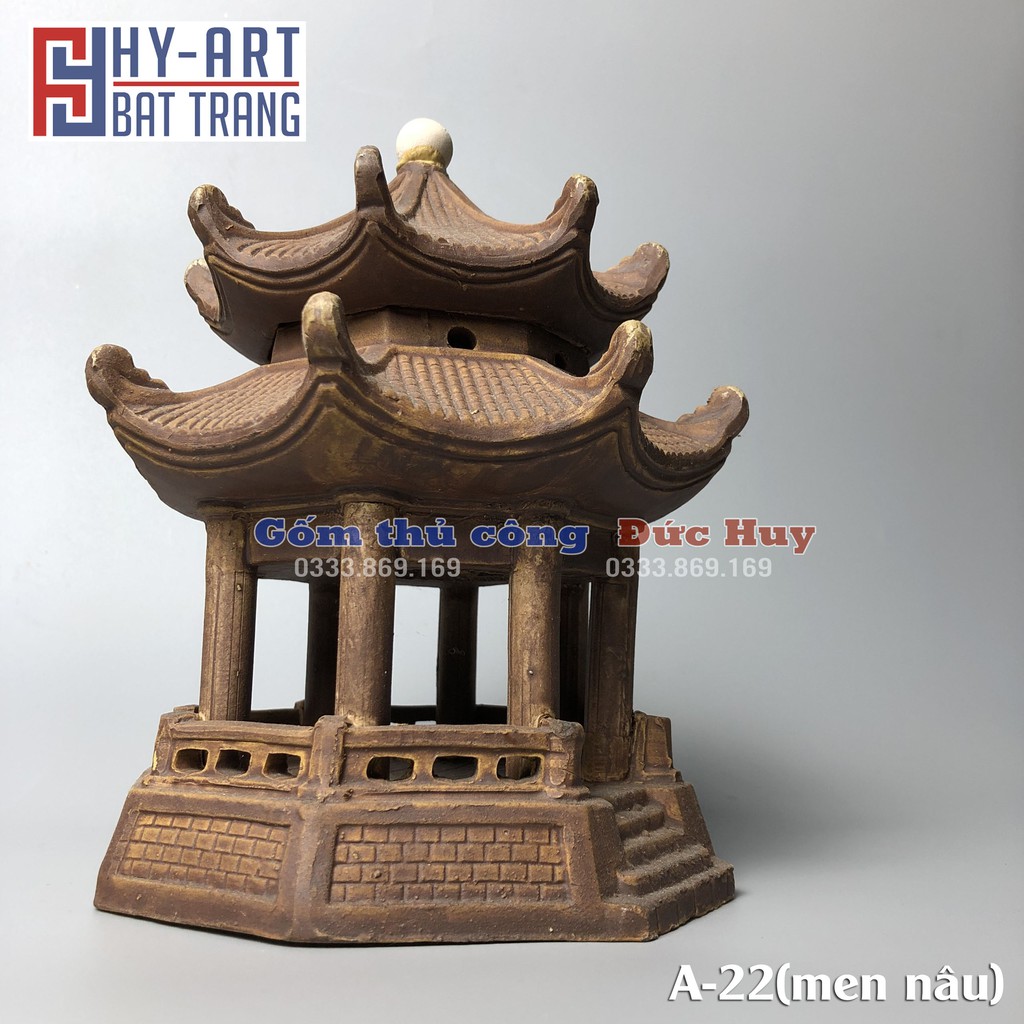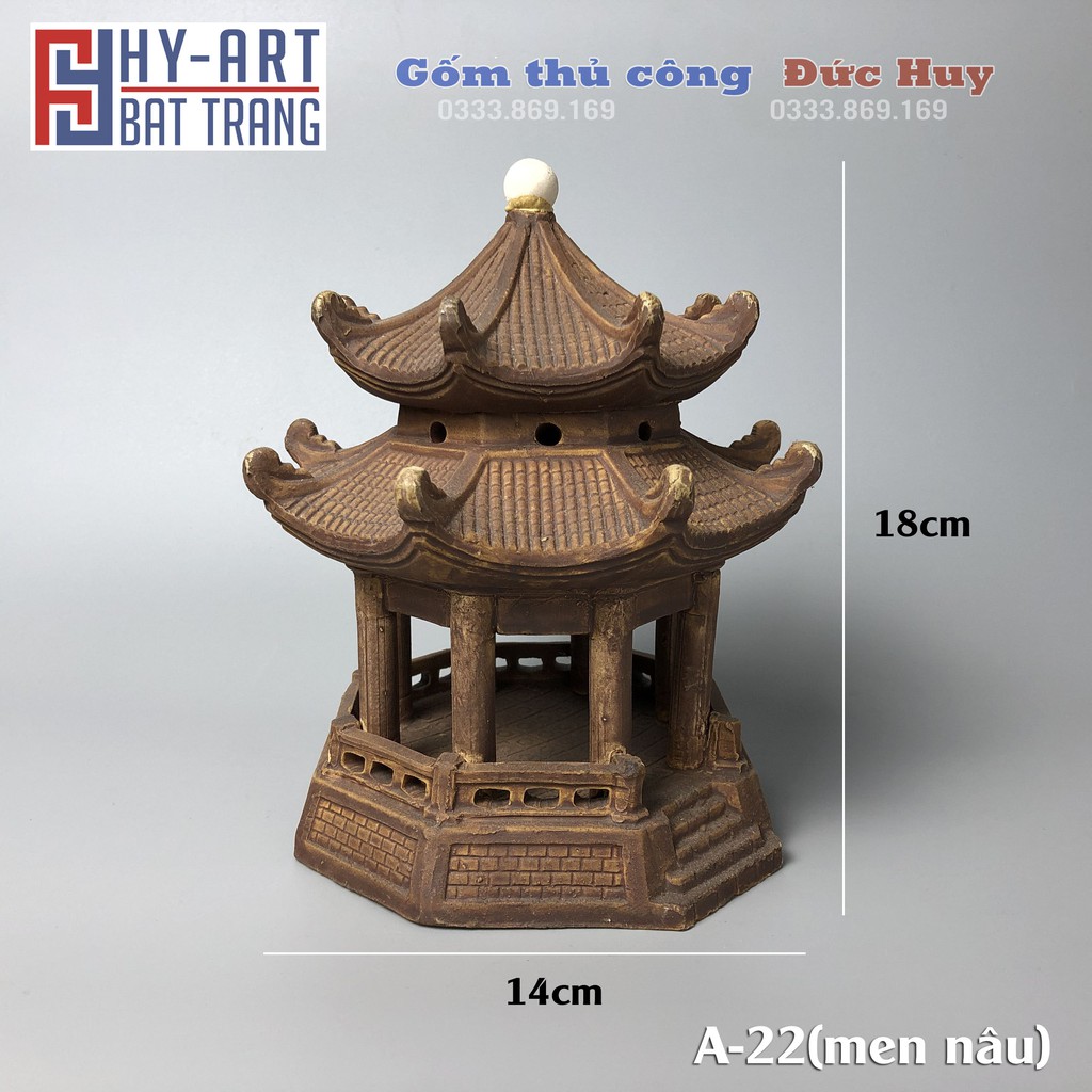 Tiểu cảnh hồ cá, bể cá cảnh, mô hình gốm lầu bát giác trang trí hòn non bộ chậu cây bonsai- TẶNG KÈM 01 tượng mini như hình ( có thể đổi tượng mini tùy theo ý thích của Quý Khách)
