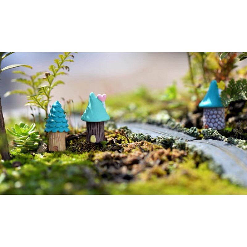 Tiểu cảnh nhà nấm xanh trang trí sen đá, xương rồng, terrarium, charm slime, cây cảnh mini, cây để bàn