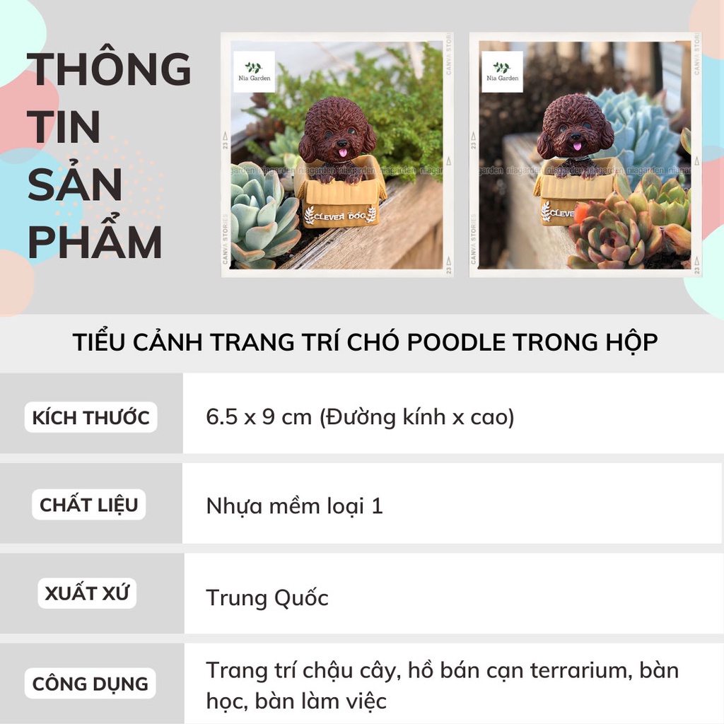 Giới thiệu Tiểu cảnh trang trí hồ cá mô hình chó Poodle decor vườn chậu cây terrarium mini bàn học Nia Garden N5