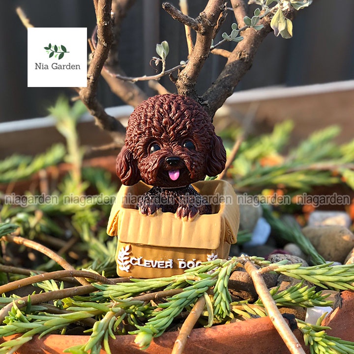 Nhà cửa & Đời sống > Làm vườn > Trang trí vườn || Tiểu cảnh trang trí hồ cá mô hình chó Poodle decor vườn chậu cây terrarium mini bàn học Nia Garden N5Còn hàng