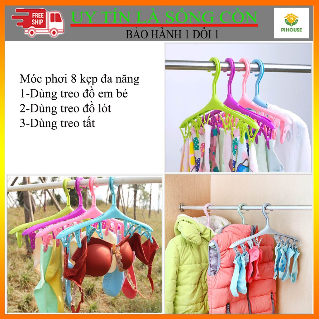 [Tiện Cho Cả Nhà] Móc phơi đồ, móc treo quần áo 8 móc đa năng tiện lợi chống bay