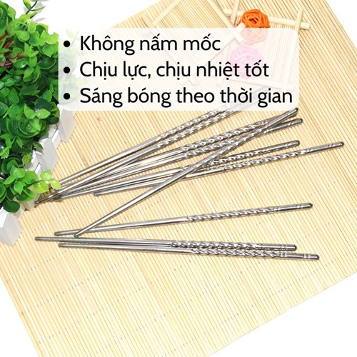 – Do làm bằng inox nên đũa không bị nấm mốc an toàn, chịu lực, chịu nhiệt, bền đẹp và sáng bóng theo thời gian